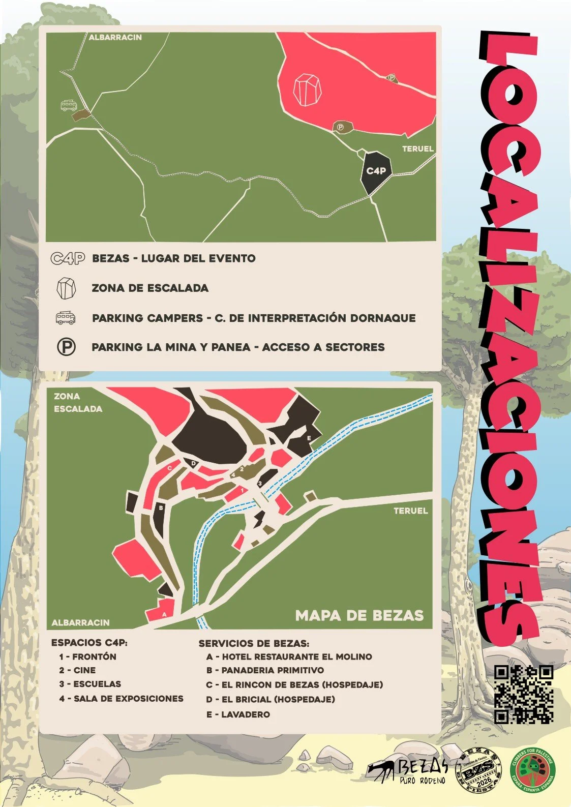 El 1º Encuentro de Escalada x Palestina es un encuentro solidario que tendrá lugar los días 13, 14 y 15 de marzo de 2026 en el pueblo de Bezas, en el corazón de la Sierra de Albarracín.